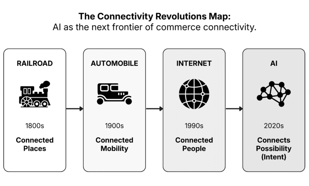 The railroad connected places. The internet connected people. AI connects possibilities — it moves with intent.